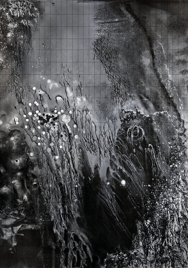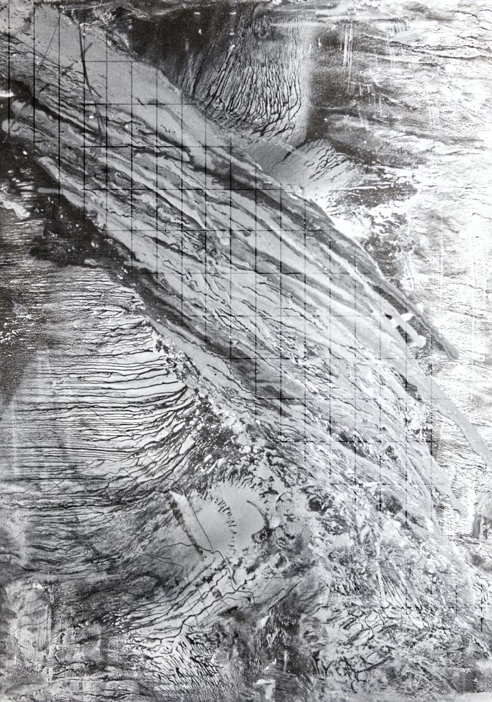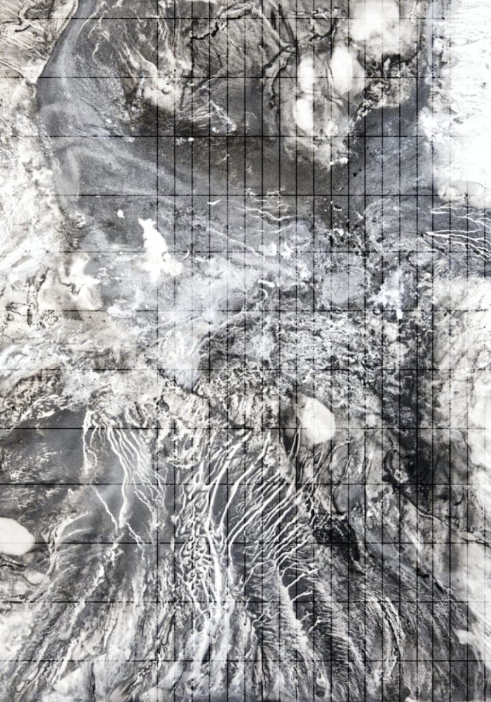 This corpus unfolds like a logbook — an atlas resonating in harmony with the musical work — drawing its source from René Daumal’s unfinished novel Mount Analogue and Fernand Deligny’s Lignes d’Erre. These are entropic expressions of psychic states and poetic reflections, traced through back-and-forth movements (in the manner of boustrophedons), seeking to transcribe the space of the common — beyond language.e beyond language.